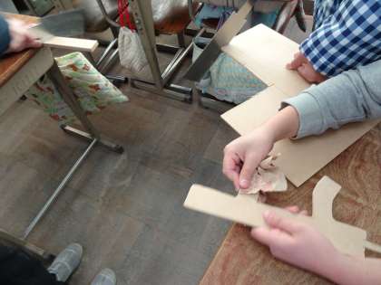 木材を切ったり組み合わせたりたりしながら,楽しく使えるものを考えました。