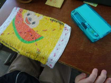 ぞうきんづくりをしています。