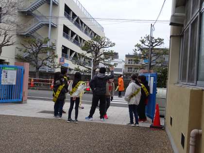 朝のあいさつ運動です。自分からあいさつできる人が増えてきました。