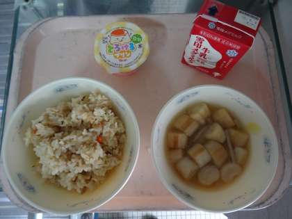 6年生の卒業を祝い,豆乳プリンをつけました。