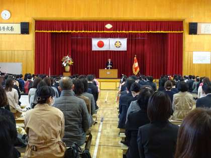 学校長式辞です。卒業生は集中して話を聞いていました。