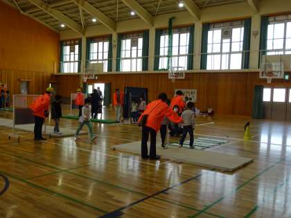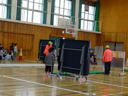 実際の道路は危険と隣り合わせです。道路を渡る時を考えながら,1年生は体育館内を歩きました。