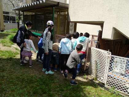 校庭や学校の周りで植物や動物などの生き物を見つけました。