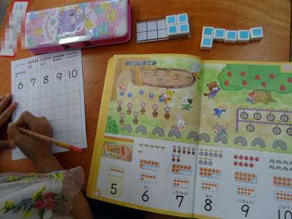 数字のかき方を理解し,正しくかいたり,ものの個数と数字を対応させたりしました。