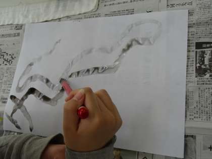 ♪ひまわり学級 図画工作「墨と水を使って」 その2