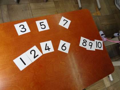 10までの数について,唱え方,数字,半具体物を対応しました。
