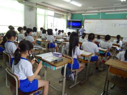 「小さな約束」の範奏を聴いて,旋律の特徴を感じ取ったり,音が重なり合う響きを聴き取ったりしました。