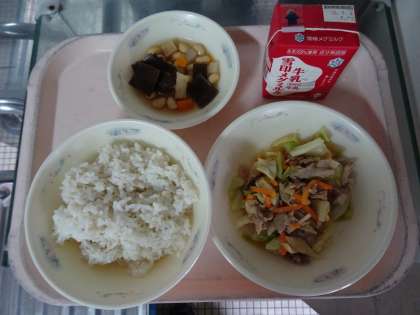 「五目煮豆」は,スチームコンベクションを使ってつくりました。口の中で昆布の旨味やふっくらたした大豆の甘味を味わいました。