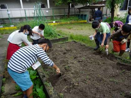 ツルレイシなどこれから育てていく種の様子を観察して記録したり,育て方を調べたりして,種をまきました。