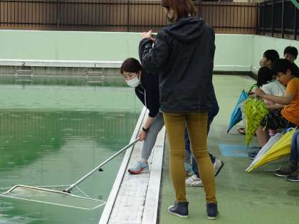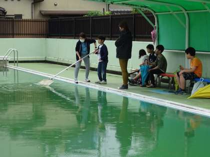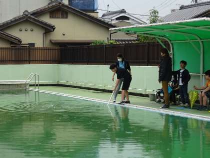 プールで生き物見つけをしました。