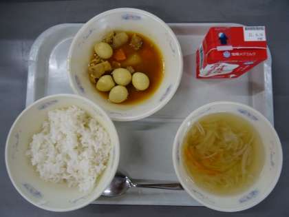 にんにくは英語でガーリックといいます。今日の「鶏肉とうずら卵のスパイシーいため」に使っています。特徴的な香りです。