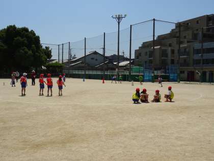リレーの仕方に慣れ,確実にバトンパスをして相手チームと競走することを楽しみました。