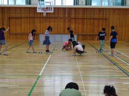 輪ゴムの太さを太くしたり,数を2本にしたりしたら遠くまで進むことを学びました。