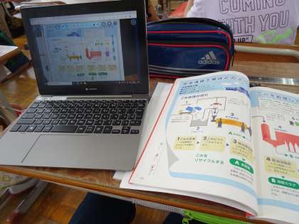 タブレット端末を使って,パンフレットの工夫について考えました。
