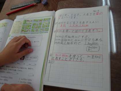 kmを使って,道のりを表しました。