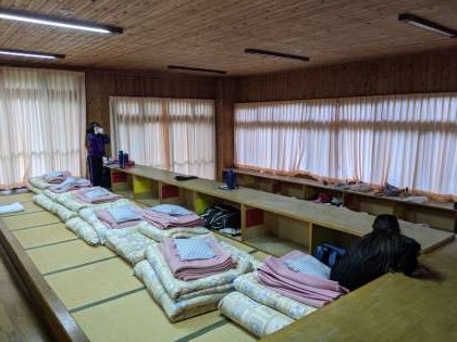 2日目です。シーツをたたんで,朝のつどいを行いました。