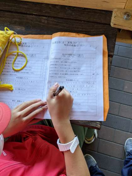 「花背山の家」の2日間の活動を通して,頑張ったことや心に残ったこと,伝えたいことをふり返っています。