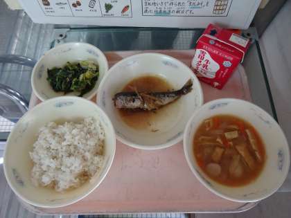 ※今日の「いものこ汁」は,京都市右京区の京北地域でつくられた「京北味噌」を使った地産地消の献立です。