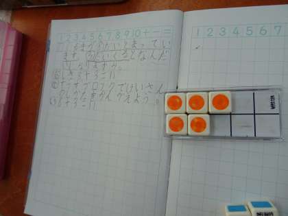 数図ブロックを使って,8+3の計算の仕方を考えました。