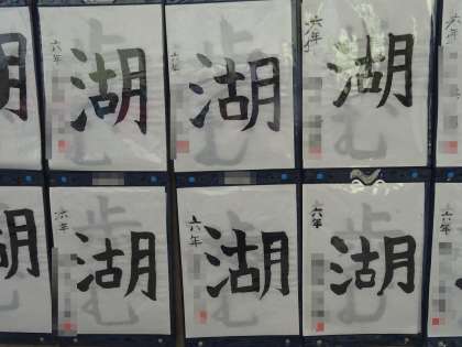 左右だけでなく,上下や中と外などの三つの部分の組み立て方に気を付けて字形を整えて書きました。