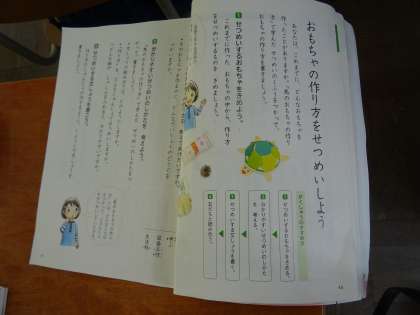 おもちゃの作り方を説明する文章を書く手順を確かめました。