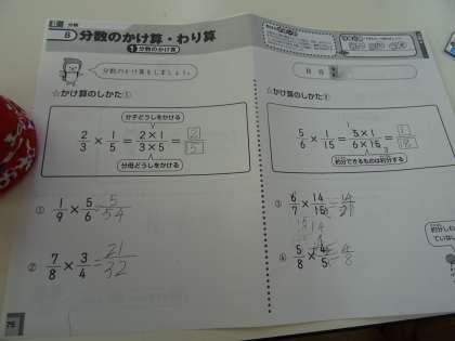 「分数×分数」の計算問題に挑戦しました。
