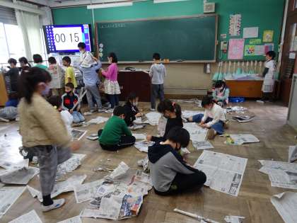 ♪2年生 図画工作「しんぶんしとなかよし」〜体で感じよう〜