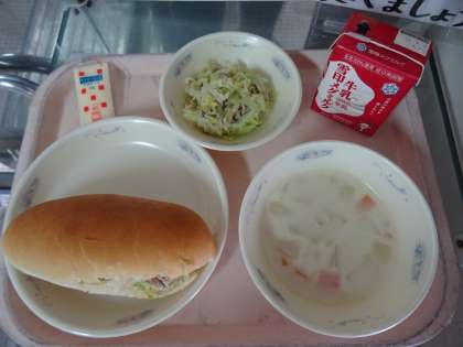 1 ハムサンドの具にマヨネーズをかけて,混ぜます。