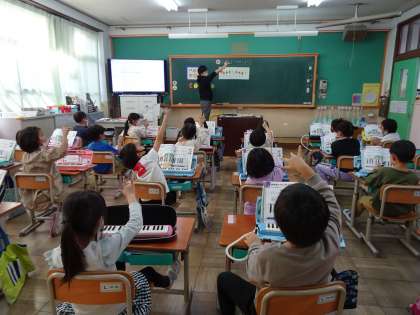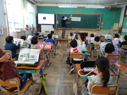 「ドレミ」の場所を確かめながら鍵盤ハーモニカで演奏しました。
