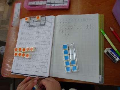 繰り下がりのあるひき算の計算の練習をしました。