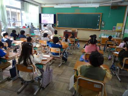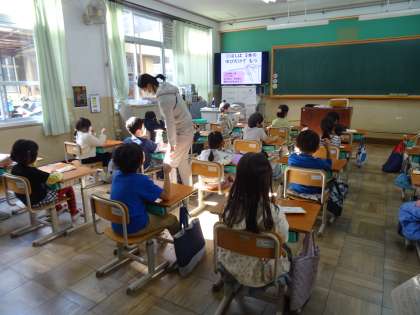 ♪1年生 食に関する指導「おはしを正しく持って食べよう」