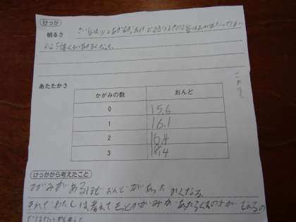 かがみで日光をたくさん集めると,明るさやあたたかさはどのようになるのか話し合いました。