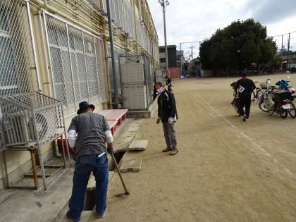 体育振興会の方による,運動場排水溝清掃が行われました。