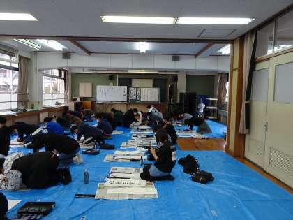 書き初めで書くときの姿勢で,文字の大きさや組み立て方に気を付けて書きました。