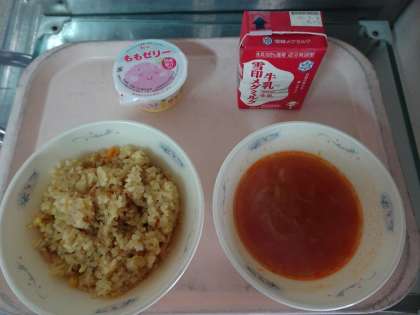 京は,給食室で保管しておいた米や缶詰などの材料を使って,給食を作りました。