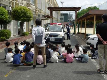 自動車から見える範囲や死角について知り,自動車から距離を取ることの大切さを考えました。