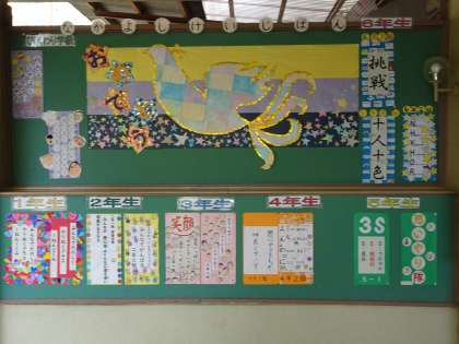 4月のなかよし掲示板です。学級目標を掲示しています。