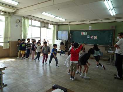 世界の遊びうたを,みんなで楽しく遊びながら歌いました。