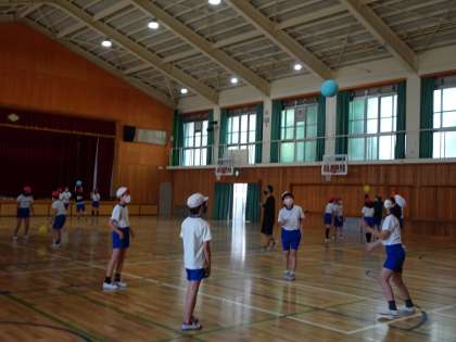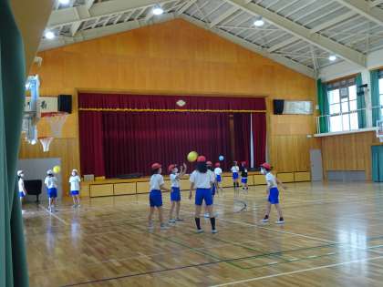 風船バレーをして,グループで関わりを深めました。