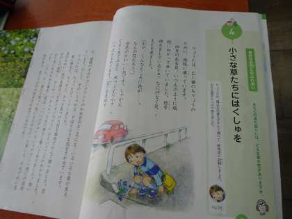 教材「小さな草たちにはく手を」を読んで話し合いました。