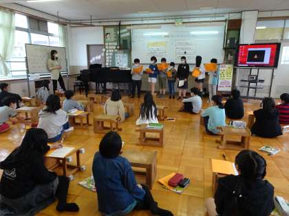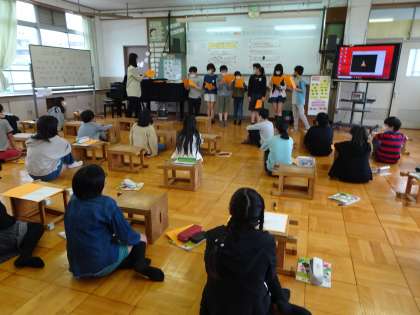 歌詞の内容や旋律の特徴を生かした歌い方を工夫して歌いました。