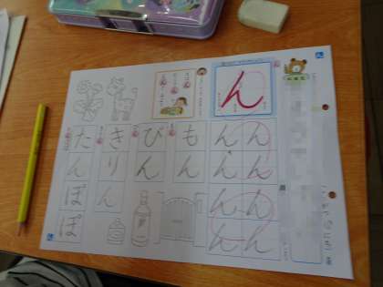 「ん」のひらがなの学習をしました。