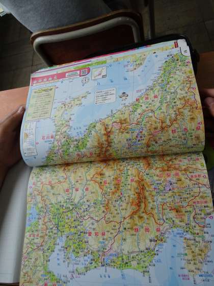 海津市の航空写真を見て,土地の様子について気付いたことや思ったことを話し合いました。