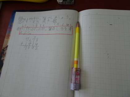 3けたの数の筆算をもとにして,4けたの数の筆算の仕方を考えました。