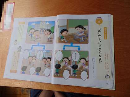 教材「ありがとう・ごめんなさい」を読んで話し合いました。