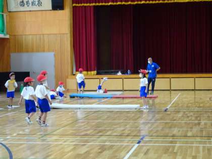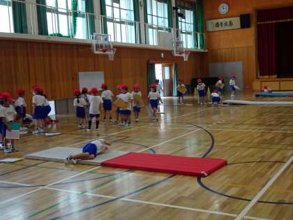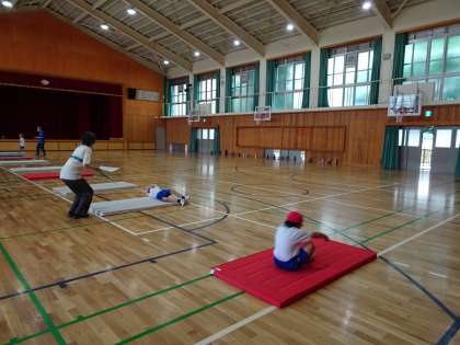 いろいろな場で,自分ができるマットを使った遊びに挑戦しました。