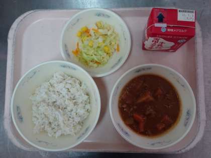 4 フライパンを熱し,油を入れてなじませ,人参・キャベツ・コーンの順に加えて炒め,塩・こしょう・醤油で調味して仕上げる。