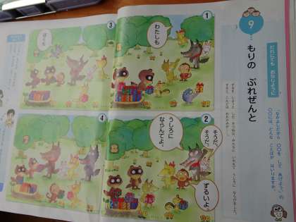 教材「もりの ぷれぜんと」を読んで話し合いました。