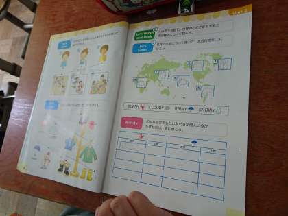 天気の言い方に慣れ親しみ,遊びの好みについて尋ねたり答えたりしました。