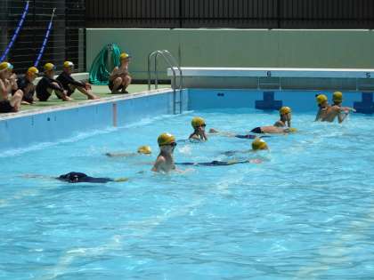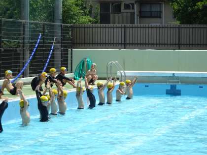 浮く・もぐる水遊びを工夫して楽しんでいます。